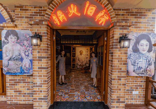 就连服务员,就像民国时期从画穿越过来的人一样,都是很有价值的好女士。吴侬软语婉约。入口中间有一辆1:1定制的豪华敞篷人力车。坐上一分钟,成为时尚名人!墙上的屏幕隔断全是民国风的老照片,暖暖的灯光让一切显得格外和谐,虚幻的场景让人觉得极其带入!