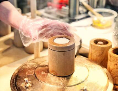 我们所有的烧饼都是蒸熟的。在现场等待的同时,也可以看到制作的全过程。将准备好的米粉放入木制蒸笼中,用高压锅蒸。蒸熟的烧饼口感绵软糯实,无渣粒。它们闻起来有淡淡的米香,是以高品质、健康和美味创造的。