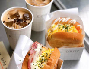 EGG BOMB加盟店内制作的吧台是半开放式的,顾客能从窗外看见制作食物的全过程。店门口的绿色牌匾也是这家店的标志性元素,认准这块牌子就能找到了。