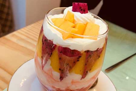 店内有着许多传统的广式甜品,如豆腐花便是其中的滋补首选。制作豆腐花所用到的黄豆中含有大量的蛋白质以及氨基酸可以起到降低胆固醇,预防心脑血管疾病的作用。一碗正宗的豆腐花,从选料到做法都不能有任何差错。其在制作的时候都是选用饱满的黄豆进行新鲜现榨,手工过滤出豆渣,再用石膏粉、生豆粉均匀调和,然后将豆浆快速浇灌至里面。