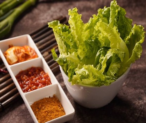 店里的烧烤盘分两层。上层是进口榴莲浆,下层是秘制小豆腐。周围的烤盘可以用来烧烤。榴莲烧烤的招牌五花肉特别受大家欢迎。五花肉质地美观,品质新鲜。烤后嫩多汁,肥而不腻。均匀蘸酱后包裹生菜,中间加一个新鲜榴莲果肉。